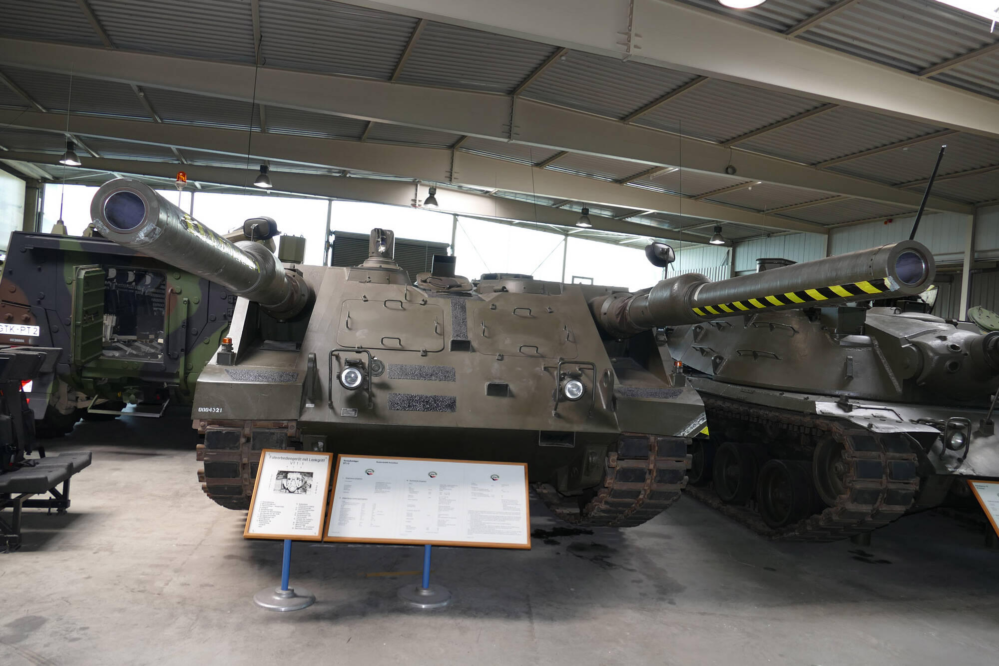 Muzey eksponatlari orasida Birinchi jahon urushi oxirida ishlab chiqilgan Fransiyaning Renault FT 17 tanki, Germaniyaning asosiy jangovar tanki Leopard 1 ning kesilgan (ichki tuzilishi koʻrinadigan) modeli, Germaniya va NATO Qurolli kuchlarining prototiplari hamda seriya oldi modellari, jumladan, Marder 2piyodalar jangovar mashinasi va Kampfpanzer 70, shuningdek, gʻildirakli texnikalar mavjud.
